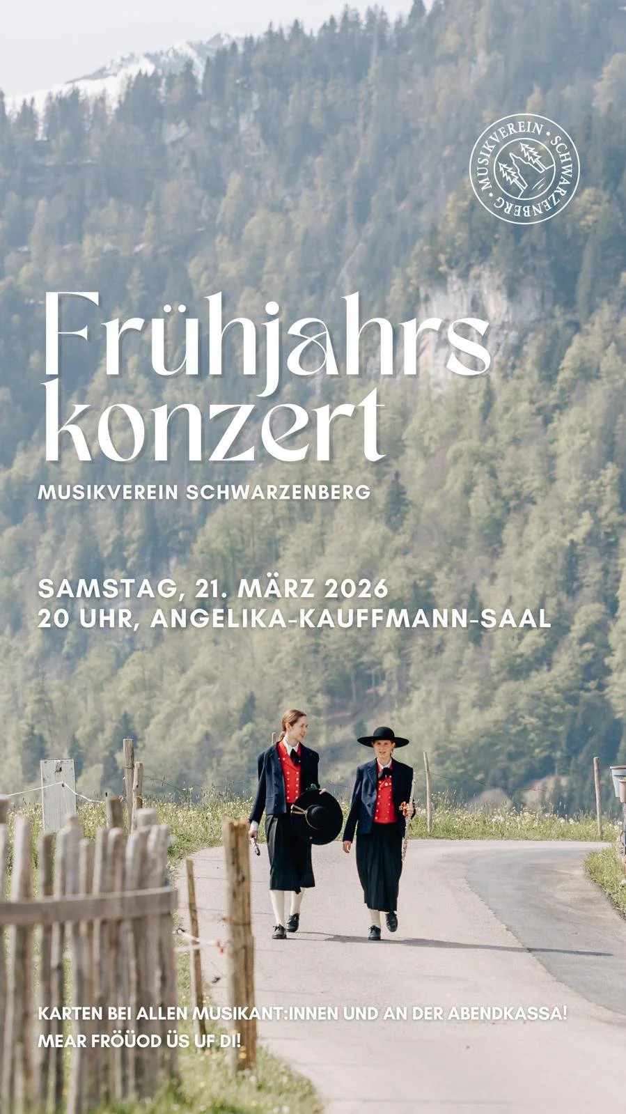 Wir freuen uns, euch alle zu unserem Frühjahrskonzert 2026 in den Angelika-Kauffmann-Saal um 20 Uhr einladen zu dürfen. Euch erwartet ein Abend voller Musik und schönster musikalischer Momente.